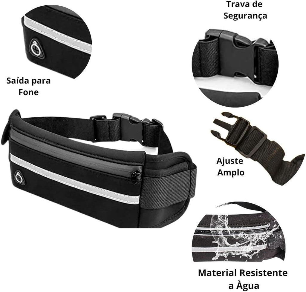 Pochete resistente à água; 2 bolsos laterais independentes.